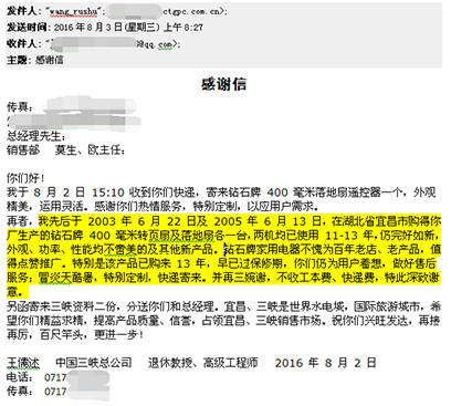 “钻石”牌,一位老顾客的感谢信